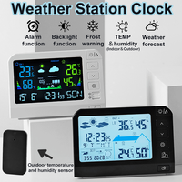 Multifunctional Weather Station Alarm Clock Forecaster Indoor Outdoor Digital Thermometer Hygrometer with Sensor Color Screen