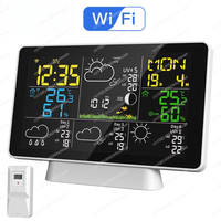 Wifi Color Screen Weather Station Digital Alarm Clock Indoor Outdoor Temperature Humidity Sensor Pressure Wind Weather Forecast