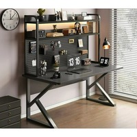 Computer Desk with Bookshelf, Carbon Fiber Desktop Home Office Study Table, Hole Board Storage Writing Desk Gaming Workstation $81.27