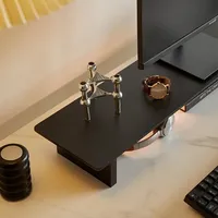 Black Solid Wood Monitor Base Office Height Increase Computer Desk Partition Storage Organize Shelf Multifunctional Laptop Stand