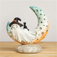 European Style Resin Mermaid Moon Ghost Witch Halloween Figurine Home Living Room Decoration Craft Gift Collectible -Creative