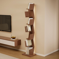 Solid Wood Bookshelf for Home Living Room Floor Standing Wall Mounted Corner Shelf Storage Unit Multi Tier LED Light Creative $1034.11