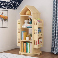 Creative solid wood children’s rotating bookshelf kindergarten bookshelf storage toy cabinet floor-to-ceiling magazine rack pict $428.15
