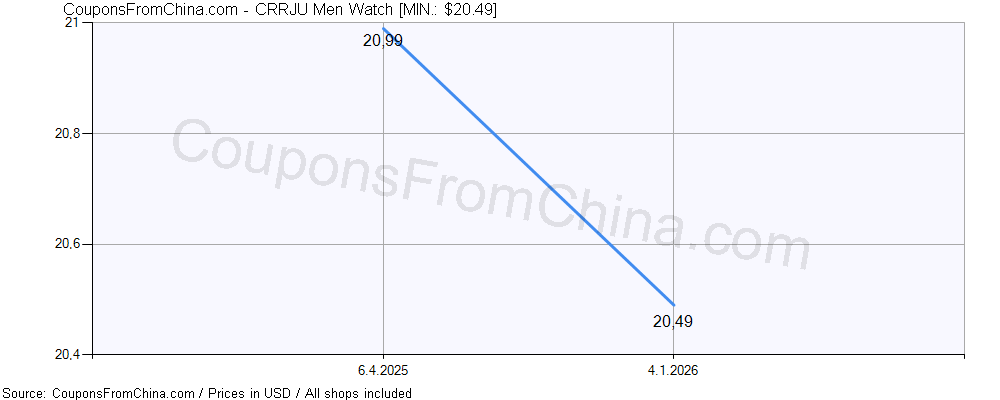 Check out price history chart (for all/most countries) for CRRJU Men Watch. The lowest price was: $20.49.