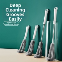 Cleaning Brush For Cup And Bottle Containers Stainless Steel Long Handle With L-Shaped Nylon Bristles For Deep Reach