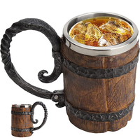 Stainless Steel Wooden Barrel-Shaped Beer Mug Large Capacity Bar Party Wine Utensils Washable Reusable Beer Mug