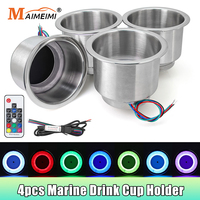 4pcs Marine Boat Stainless Steel Recessed Cup Shape Drink Holder 12V LED Light With Remote RGB Lights Cup Drink Bottle Holder