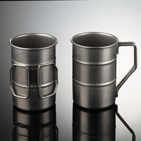 Retro Stainless Steel Outdoor Camping Water Cups Beer Mugs Folding Handle Oil Barrel Shape Coffee Mugs Happy to Friends