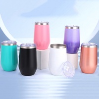 12oz Sublimation Blank Thermos Cup Stainless Steel Egg Shape Mug With Lid and Straw Vacuum Flasks DIY Coffee Mug Wine Beer