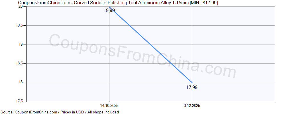 Do you need price history chart (for all/most countries) for Curved Surface Polishing Tool Aluminum Alloy 1-15mm? There we go. The lowest price was: $17.99.