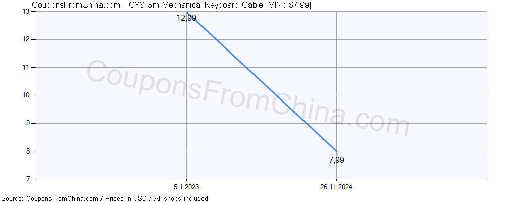 Check out price history chart (for all/most countries) for CYS 3m Mechanical Keyboard Cable. The lowest price was: $7.99.