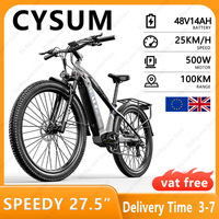 Cysum-Speedy Electric Bike with Disc Brake, 500W Motor, 48V 14AH Battery, 27.5×2.2 inches, Max Speed 40 km/h