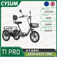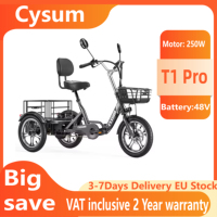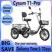 [EU DIRECT] CYSUM T1 Pro Electric Tricycle 48V 22Ah Battery 250W Motor Top Speed 25KM/H 16inch Tires 120-150KM Mileage Range 150KG Max Load Folding Electric Bike – Grey