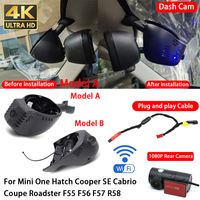for Mini One Hatch Cooper SE Cabrio Coupe Roadster F55 F56 F57 R58 4K Dash Cam Front Rear Car Camera DVR Wifi Plug & Play $141.78