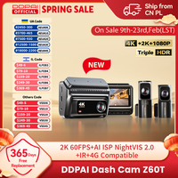 DDPAI Z60T Dash Cam 3-Channel HDR 4K+2K+1080P Front Rear Interior Night Vision 24H Parking Monitoring ADAS Dash Camera Car DVR