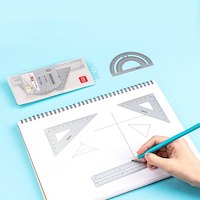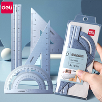 4 in 1 Deli Metal Ruler Stationery Set Aluminum Alloy Multifunctional Combination Ruler Triangle Protractor Alloy Drawing $2.15