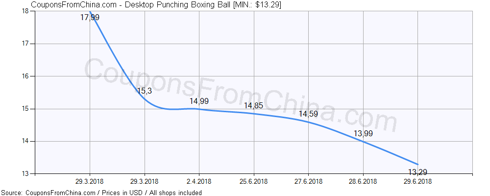 Here is price history (for all/most countries) for Desktop Punching Boxing Ball. The lowest price was: $13.29.