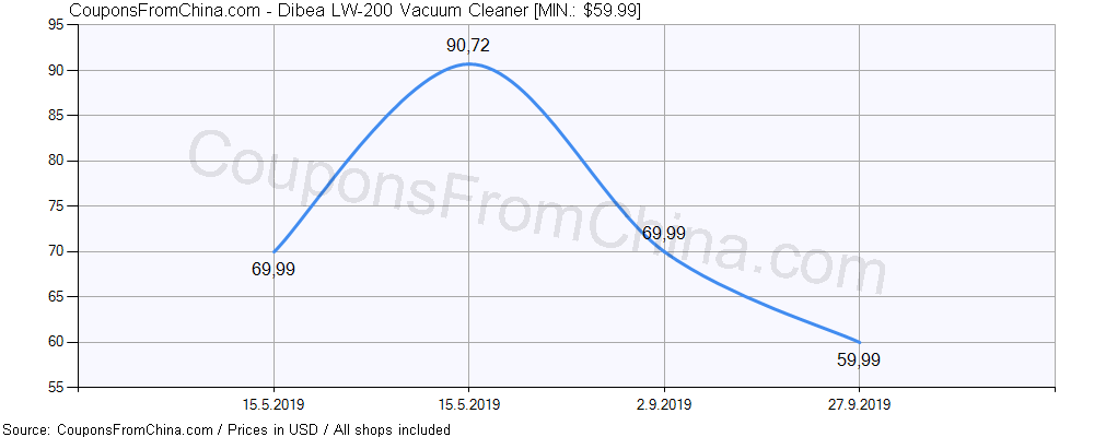 Check out price history chart (for all/most countries) for Dibea LW-200 Vacuum Cleaner. The lowest price was: $59.99.