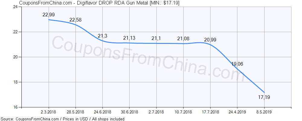 Check out price history chart (for all/most countries) for Digiflavor DROP RDA Gun Metal. The lowest price was: $17.19.