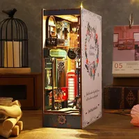 Bookends Doll House DIY Wooden Book Nook Shelf Insert Miniature Kit Retro Ornaments Bookshelf $49.87