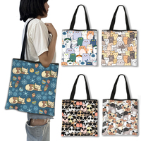 Kawaii Cartoon Dog Cat Totes Bag Puppy Kitten Canvas Shoulder Bag Harajuku Women Handbag Foldable Large Capacity Shopping Bags