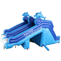 Frame Pool Water Giant PVC Double Dolphin Inflatable Slide with Blower Customizable Size for Kids Play $4209.18