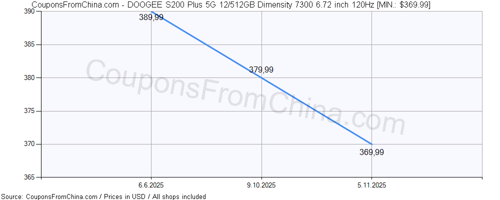 Price history (for all/most countries) for DOOGEE S200 Plus 5G 12/512GB Dimensity 7300 6.72 inch 120Hz is here. The lowest price was: $369.99.