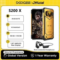 DOOGEE S200 X 5G 1.32 inch AMOLED Rear Display 32GB 512GB 100MP Triple Camera Night Vision Dimensity 7050 6.72 inch 120Hz 10100mAh 33W Fast Charge Android 14 NFC IP68 IP69K Waterproof Rugged Smartphone – Black EU Version