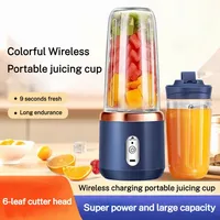Double Cup Multifunction Usb Fruit Mixers Juicers 6 Blade Portable Electric Juicer Blender Fruit Juicer Cup Food Milkshake Juice Maker – Blue