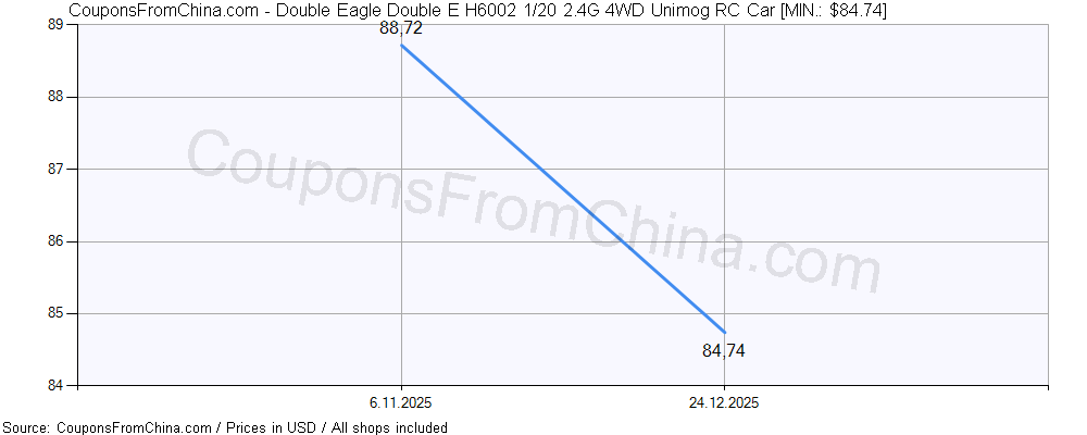 Check out price history chart (for all/most countries) for Double Eagle Double E H6002 1/20 2.4G 4WD Unimog RC Car. The lowest price was: $84.74.