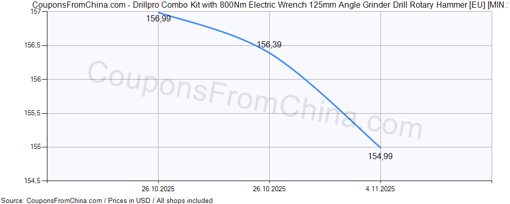 Click on image to enlarge. ![Drillpro Combo Kit with 800Nm Electric Wrench 125mm Angle Grinder Drill Rotary Hammer [EU] price history Price history for Drillpro Combo Kit with 800Nm Electric Wrench 125mm Angle Grinder Drill Rotary Hammer [EU]](https://couponsfromchina.com/pricehistory/History54621.png)