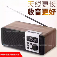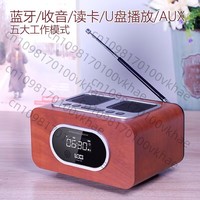 Dual speakers Wooden Bluetooth alarm clock FM radio Plug-in card U disk MP3 playback Delayed shutdown Plug-in speaker