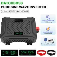 DATOUBOSS Dual Voltage 12V/24V to 230V 1500W/3000W Pure Sine Inverter, with Intelligent Detection System LCD Display, EU Plug