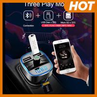 LED Backlit Bluetooth FM Transmitter Car MP3 TF/U Disk Player Handsfree Car Kit Adapter Dual USB QC 3.0+PD Type C Fast Charger