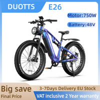 DUOTTS E26 Electric Bike 750W 26 Inch Fat Tires 48V 20Ah 960Wh Full Suspension E-MTB Support APP E-bike Hydraulic Disc Brakes $2818.83