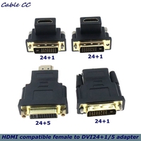 HDMI-compatible female to Bidirectional DVI D 24+5/24+1 male UP Down elbow Cable Connector Converter for Projector HDMI to DVI $1.24