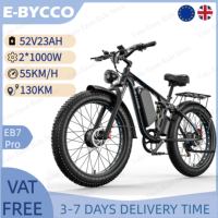 E-BYCCO EB7 Pro Electric Bicycle 2*1000W Motor 52V 23Ah Removable Battery E-bike 26*4.0 Inch Tire 130KM Range E-Mountain Bike $1519.71