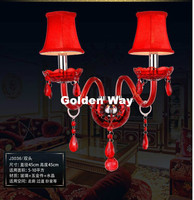 Modern Hotsale Red Crystal Wall Lamp Candle Led E14 Bulbs Purple Fabric Lampshade 2 Lights E14 With Shade 100% Guaranteed $43.50