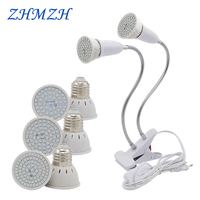 E27 LED Plant Growing Lamp Bulb 110V 220V Flexible Two Head Clip Grow Lamp 60 80LEDs Base Hydroponic Growth Lights Full Spectrum