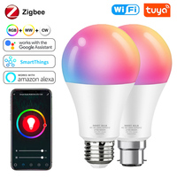 Zigbee Smart LED Light Bulb 15W E27 B22 RGB+WW+CW Tuya WiFi Lamp Dimmable Voice Control Compatible With Alexa for Home Decor