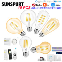 1-10P AC220V ZIGBEE 3.0+2.4G RF Vintage Style LED Filament Bulb A60 G95 ST64 E27 7W Pro Dual White Smart APP Alexa Voice Control