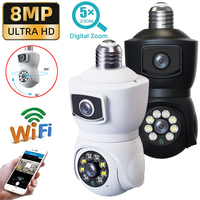 8MP E27 Bulb WiFi Camera Dual Lens Dual Screen Auto Tracking Two Way Audio Cam Color Night Vision Security Surveillance Camera