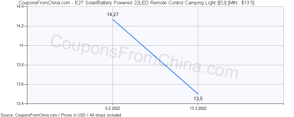 Click on image to enlarge. ![E27 Solar/Battery Powered 22LED Remote Control Camping Light [EU] price history Price history for E27 Solar/Battery Powered 22LED Remote Control Camping Light [EU]](https://couponsfromchina.com/pricehistory/History32997.png)