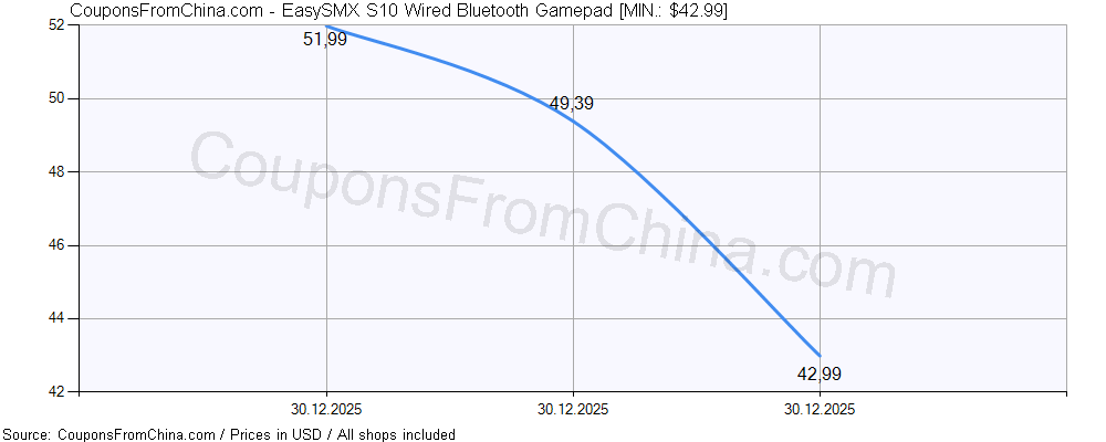 Check out price history chart (for all/most countries) for EasySMX S10 Wired Bluetooth Gamepad. The lowest price was: $42.99.