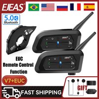 EJEAS V7 Helmet Interphone Motorcycle with EUC Remote Control Full Duplex Intercom Bluetooth 5.1 Headset for 7 Riders Waterproof $69.11