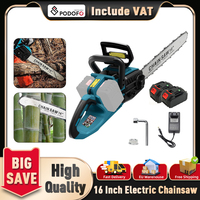 Podofo 16” 1500W Brushless Electric Chainsaw with Safety Lock Cordless Pruning Woodworking Tool with 2 Batteries and 1 Charger $82.05
