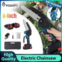 Podofo Electric Chainsaw 6” Cordless Mini Chainsaw Woodworking Tool with 2 Batteries for Trimming Trees Cutting Wood Outdoor $42.29