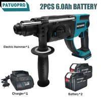 PATUOPRO 20MM Brushless Electric Hammer Cordless Rotary Hammer Drill Rechargeable Home Repair Power Tools For Makita 18V Battery