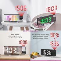 Led Bedroom Projection Alarm Clock Table Electronic Alarm Clock 180 Digital Projector Degrees Desktop Clock With Bedside Time $12.99