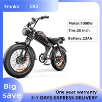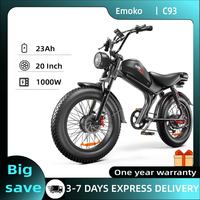 [EU Direct] EMOKO C93 Electric Bike 48V 23AH Battery 1000W*2 Dual Motors 20inches Tires 55-75KM Max Mileage Range 120KG Max Load Electric Bicycle – Black